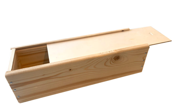 Je kunt deze wijnkist met je eigen tekst laten graveren, maar ook het bedrukken van het deksel behoort tot de mogelijkheden. Als je de wijnkist een exclusieve uitstraling wilt geven kan je kiezen voor een deksel van plexiglas deze kan je ook bij de verpakkingswebwinkel laten bedrukken. Voor beide deksels hout of plexiglas geldt dat deze 3 mm dik zijn. De kist is voorzien van een elegant houten schuifdeksel, dat niet alleen praktisch is maar ook een vleugje nostalgie toevoegt aan het geheel. Het schuifdeksel sluit stevig af, waardoor de wijnfles goed beschermd wordt tegen licht en stof. Voor diegenen die een moderne twist willen, bieden we de mogelijkheid om de wijnkist te voorzien van een plexiglas deksel in combinatie met een mooie zwarte fluwelen inlay. Dit deze unieke exclusieve combinatie  biedt een stijlvol venster naar de kostbare inhoud, perfect voor presentatie van uw relatiegeschenk.